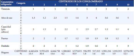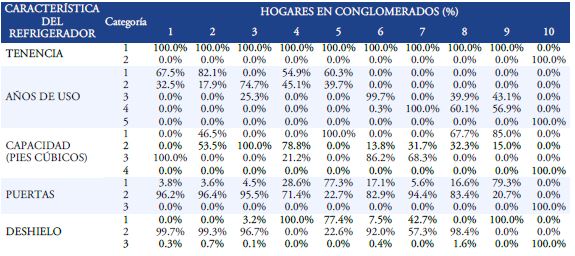 Resultados: Se identificaron cerca de nueve millones de hogares sin refrigeradores energéticamente eficientes, los cuales se dividieron en cuatro grupos de acuerdo a las siguientes características: desplazados, pobres semiurbanos, pobres urbanos y clases medias.