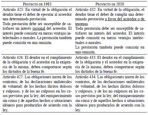 El libro m "De las obligaciones" del Proyecto de 2020 (al igual que el de 1983) principia con el artículo 432, el cual en su primer inciso dispone que "En virtud de la obligación, el deudor tiene el deber de cumplir una determinada prestación a favor del acreedor o de terceros". Este texto coincide -en líneas generales- con el del artículo 425 del Proyecto de 1983, en cuyos fundamentos se indicaba que en él "se da un concepto claro" de las obligaciones y se "señala su fin"7, colocándose así en una línea de continuidad dentro de la tradición romanística, que tuvo inicio en el siglo vi d.C. con la célebre definición de la obligación de las Institutiones de Justiniano (I. 3,13 pr.)8 y que ha tenido un particular desarrollo en la codificación latinoamericana (lo que representa también un elemento de unidad y de resistencia del derecho privado de América Latina que es importante conservar).