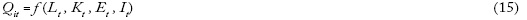 La función de producción propuesta, que relaciona los factores productivos utilizados en la industria manufacturera chilena y el nivel de producción que contribuyen a alcanzar, es la siguiente.
