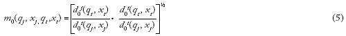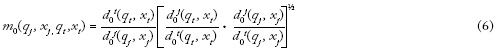 el índice de Malmquist (orientado al producto) se puede expresar de dos maneras: primera, como muestra la ecuación (2), utilizando como referencia la tecnología del periodo j, y segunda, como muestra la ecuación (3), utilizando como referencia la tecnología del periodo t.