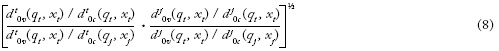 El cambio en la eficiencia de escala de la ecuación (8) es la media geométrica de dos medidas de cambio de la eficiencia de escala: una con respecto a la tecnología del periodo t y otra con respecto a la tecnología del periodo j.