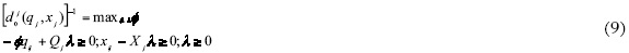 Para calcular el índice se requiere estimar las cuatro medidas de distancia de la ecuación (5), lo cual exige plantear los problemas de programación lineal respectivos. Suponiendo rendimientos constantes, se debe optimizar la función objetivo, sometida a las siguientes restricciones (Fáre et al., 1994):
