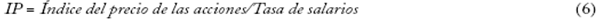 Nuestro índice ip es muy diferente. Primero, traslada la discusión del simbolismo ontológico al simbolismo operativo14. Cabe señalar que, a diferencia de Hussman, no comparamos el poder adquisitivo general y los servicios de ingreso, solo comparamos precios. Para Hussman, la capitalización nominal de mercado es un símbolo ontológico: representa, exacta o inexactamente, una entidad externa; en este caso los útiles "reales" que generará el acervo de capital "real". En contraste, consideramos los precios de las acciones y la tasa de salarios como símbolos generativos u operacionales. Su relación no representa una realidad externa, constituye esa realidad; en este caso el poder capitalizado de los propietarios impuesto a la población.
