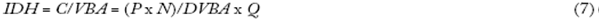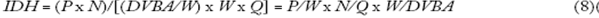 La ecuación 8 divide y multiplica el denominador del idh por la tasa de salarios w y reacomoda los términos:
