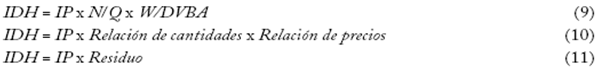 Las ecuaciones 9 a 11 hacen reordenamientos adicionales para acentuar la conexión entre los índices de desajuste y de poder: