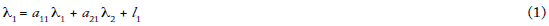 Se considera, asimismo, λ1 como el valor de 1 y λ 2 como el valor de 2. En conformidad con la primera definición que le imputa Morishima a Marx, el valor de 1 ha de ser igual a la cantidad total de trabajo materializado o cristalizado en dicha mercancía. Por tanto, llegamos a esta expresión matemática: