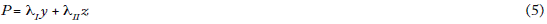 Para demostrar tal relación haremos uso nuevamente del análisis insumo-producto (Morishima, 1973), pp. 29-30. Considerando y como el vector columna de la producción neta de medios de producción (sector I) y z como el vector columna de la producción de bienes salario y de bienes suntuarios (sector II), podemos expresar el producto nacional, P, medido en términos de trabajo social, como:
