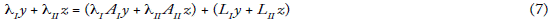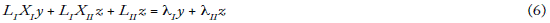 De ello se sigue que el volumen total de empleo medido en tiempo de trabajo en el sector I de medios de producción se denota como LI(XIy + xIIz), al que debemos, asimismo, sumar la cantidad de empleo del sector il de bienes salario y de bienes suntuarios. Obtenemos, por tanto, la siguiente ecuación del empleo total: