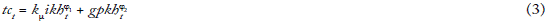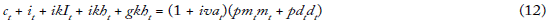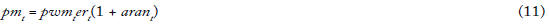donde el precio externo (pωmt), la tasa arancelaria (aran) y la tasa de cambio real (er) determinan el precio doméstico de las importaciones, así: