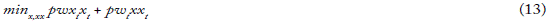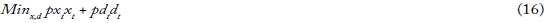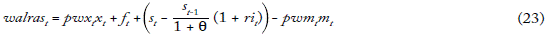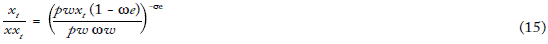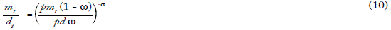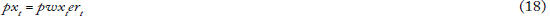 donde pωxt es el precio de las exportaciones en moneda extranjera, xt las exportaciones, pωt el precio de los bienes que compiten con las exportaciones locales en el mercado mundial, y xx otros abastecedores en el mercado global. Así, la restricción de la demanda corresponde a: