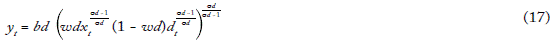La restricción entrará nuevamente como función de los parámetros de escala bd, participación wd y sustitución σd de la función CET de elasticidad constante de transformación: