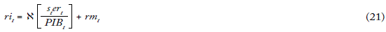 En cuanto al costo de endeudamiento externo (rit ), se incluye una prima de riesgo (ℵ) que es función de la capacidad de endeudamiento del país: