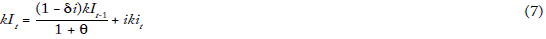 siendo δi y ikI la tasa de depreciación y la inversión en capital en infraestructura, respectivamente.