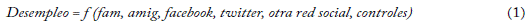 El modelo planteado en el estudio indaga si las redes sociales físicas y electrónicas disminuyen las probabilidades de encontrarse en situación de desempleo. Se formula la propuesta siguiente: