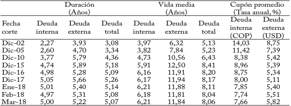 Adicionalmente, las características de la contratación de la deuda pública y su impacto sobre el presupuesto público por la vía de las amortizaciones y de los intereses dependen de las condiciones de mercado (periodo de gracias, condiciones de amortización, tasa de interés, entre otras) a las cuales se contrate, y que difieren según se trate de deuda interna o externa (cuadro 7).