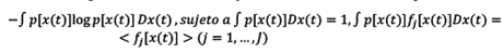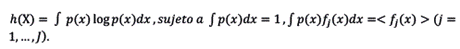 donde se maximiza con respecto a p (x), λj los son valores en R que representan la información adicional que se obtiene con cada restricción, y λ0 es el multiplicador de Langrange, que normaliza p(x) paraque se pueda interpretar como una distribución de probabilidad. El resultado es
