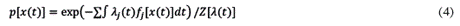 donde Dx (t) representa la integral referida a las posibles trayectorias de x (t) . La distribución de probabilidad de máximo calibre es entonces: