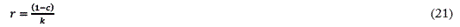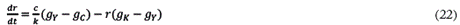 donde c C/Y es la proporción entre el valor monetario del capital circulante y el producto, y k K/Y es la proporción entre capital fijo y producto. La ecuación de movimiento de la tasa de ganancia es la derivada de sus partes con respecto al tiempo: