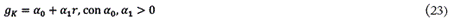Se supone, además, que la tasa de crecimineto del product gy es mayor que gC , es decir, que existe cambio técnico ahorrador de trabajo. Y como supuesto de comportamiento se asume que los capitalistas tienden a aumentar la acumulación de capital fijo cuando se incrementa la tasa de ganancia. Por simplicidad, esto se expresa mediante la siguiente función lineal: