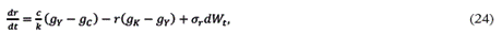Remplazando (23) en (22) e introduciendo un coeficiente de diffusion σr junto a proceso de Wiener dWt se obtiene8:
