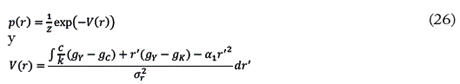 Igual que con las ecuaciones diferenciales ordinarias, la función potencial V (r) describe el tipo de estabilidad de las variables: la distribución de probabilidad está determinada por la forma que adopta la dinámica de la tasa de ganancia en el tiempo. De particular interés es que la función potencial tiene dos puntos críticos en regiones cóncavas y convexas.