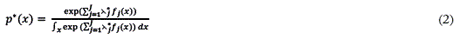 donde los λj* se obtienen optimizando con respecto al sistema dual (Jaynes, 1957). La ecuación (2) pertenece a la familia esponencial, lo que significa que, bajo ciertas condiciones de regularidad, todo problema expresado por medio de momentos tiene una solución única (Csiszár, 1984).