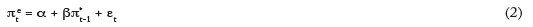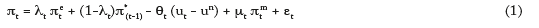 La expresión (1) describe una curva de Phillips que pondera la formación de expectativas dependiendo en una porción de las expectativas de inflación de largo plazo y en otra de sus valores pasados de la inflación, si λt >0,5 las expectativas son más racionales que adaptativas. La expresión (2) da cuenta de la relación lineal entre los dos mecanismos de formación de expectativas. Si tanto λt es superior a un medio y Pt es un valor pequeño, esto significa que las expectativas de inflación de largo plazo tienen en cuenta en menor medida la inflación pasada y la credibilidad sobre los efectos de la política monetaria es alta.