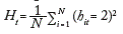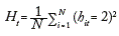 Usando los puntajes promedios por municipio de la prueba del ICFES, se calcula el coeficiente de transición relativa , dado en la ecuación (5). Una vez calculado hit, se procede a calcular el estadístico del diferencial medio de las transiciones al cuadrado, Ht, dado por la ecuación (8).