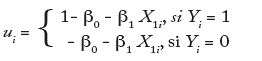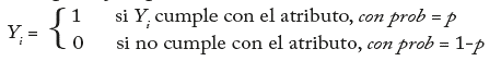 Y debido a que Y representa una variable cualitativa de "éxito" y "fracaso", que no es más que una variable Bernoulli, tomando dos valores: 0 y 1, donde su esperanza es,