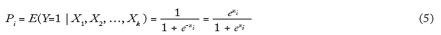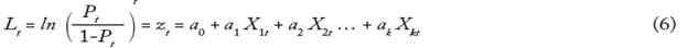 Al modelo (6) se denomina logit (Gujarati y Porter, 2010). Después de las estimaciones, se pueden encontrar los efectos marginales de X1, X2, Xk en las probabilidades, lo que se mostrará en el apartado de resultados finales.
