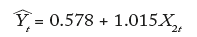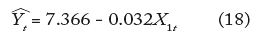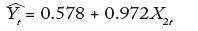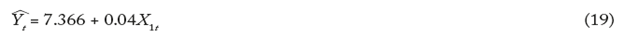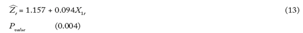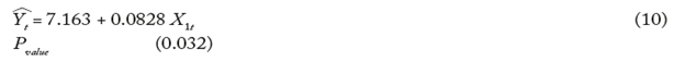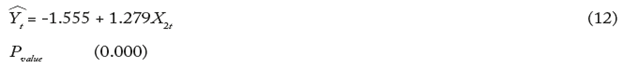 La expresión muestra que el nivel de inflación (X1t) es significativa (ver Pvalue (0.032). Intuitivamente, sostiene que si el nivel de inflación aumenta 1% se sugiere que el salario aumente 0.082%; mostrando claramente que las compensaciones de los aumentos salariales son ocasionadas por el aumento de precios.