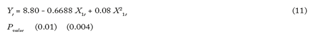 Adicional a que tal estimación es significativa (ver Pvalue ), su comportamiento tiene forma de parábola. Tomando la derivada de (11),