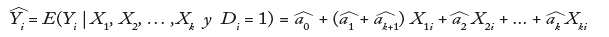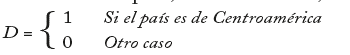 Por ejemplo, podemos analizar el efecto de X1i. sobre Y, dependiendo si el país es de Centroamérica o de otra región. Para su análisis, se propone la siguiente expresión,
