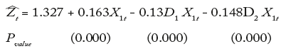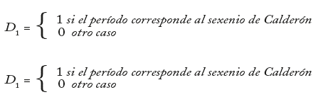 Finalmente, para el periodo actual de Andrés Manuel López Obrador, haciendo D1 = 0 y D2 = 0 en (17), tenemos,