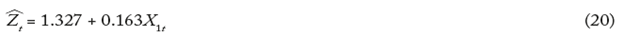 < 0 si X1t < 4.18, mostrando que para niveles de inflación menores1 'a 4.18 no hay margen para aumentos salariales, incluso los salarios estimados son decrecientes.