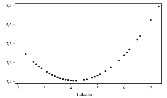 Nuestro trabajo sugiere la intervención del gobierno a partir de un valor crítico de la inflación, donde se deduce una curva de Phillips alternativa y cuadrática. El umbral anterior sirve como señal para que las autoridades reaccionen debido a los efectos que la inflación tiene sobre el ingreso de los ciudadanos, lo que se puede traducir como un rescate de la confianza ciudadana a partir de alertas o situaciones críticas. En este sentido, Lee (2008) señala que, con la crisis de 2008, independientemente de las políticas micro o macroeconómicas que adoptaron los gobiernos europeos para enfrentarla, la confianza ciudadana disminuyó considerablemente.