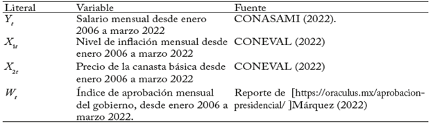 Comisión Nacional de Salarios mínimos (CONASAMI) (2022). Tabla de Salarios Mínimos Generales y Profesionales por Áreas Geográficas (información desde 1992 a 2022). [https://www.gob.mx/conasami/documentos/tabla-de-salarios-minimos-generales-y-profesionales-por-areas-geograficas]