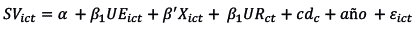 La estimación de la ecuación que explica la satisfacción con la vida (SVict ) del individuo i, residente en la ciudad c en el tiempo t, como función de la condición de desempleado (UEict), parámetros individuales (Xict), la tasa de desempleo local (URct), y dummies por ciudad (cdc) y año. La ecuación general a estimar tiene la forma: