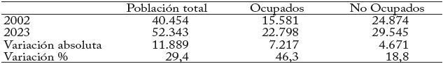 Adoptando esta perspectiva, el primer elemento que emerge es que, frente a un crecimiento de la PET del 37,2%, el crecimiento de los empleados en edad laboral (15-64 años) fue del 44,3%; además, la diferencia es mucho más pronunciada para las mujeres (36,8% frente a 53%) que para los hombres (37,7% frente a 38,7%). También se observa que el crecimiento de la fuerza laboral fue inferior al del empleo, lo que llevó a una disminución del desempleo tanto para hombres como para mujeres.
