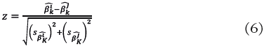 Clogg, C. C., Petkova, E., & Haritou, A. (1995). Statistical methods for comparing regression coefficients between models. American Journal of Sociology, 100(5), 1261-1293