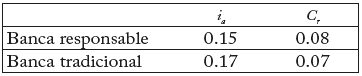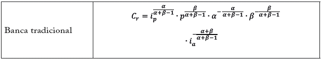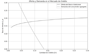Una vez realizadas las deducciones necesarias, de la maximización de la utilidad de la banca tradicional se obtiene la siguiente oferta de crédito: