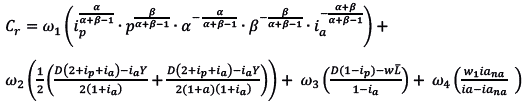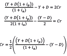 Gi: Gasto en el proceso productivo = (w L + ia pk K + ip D) Cri