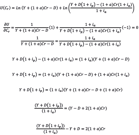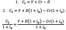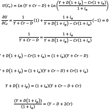 En este caso, el consumo en el periodo 1 corresponde al consumo presente, = en el periodo2, al futuro desœntado avalorpresente suponiendo la tasa de descuento igual a la tasa de interés activa ia :