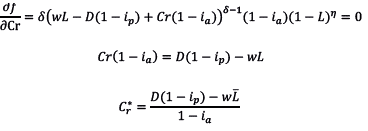 La ecuación anterior sugiere que el consumidor financiero tiende a solicitar un mayor crédito cuando enfrenta una tasa de interés activa más baja. De igual forma, ante una tasa de interés pasiva más alta, el consumidor financiero opta por incrementar su proporción de depósitos. La proporción de crédito demandada por el consumidor que integra consideraciones sociales y ambientales en su toma de decisiones puede modificar la cantidad total de crédito a demandar.