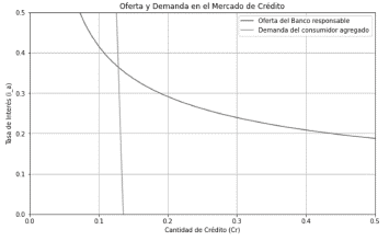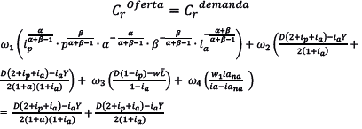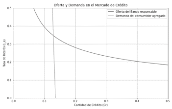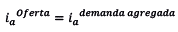 En economía, el equilibrio de oferta y demanda es importante para entender la dinámica de un mercado en específico, así como para validar la existencia de este. Para el caso del modelo planteado previamente, a continuación, se presenta el resultado de la igualación de la oferta y la demanda agregada, despejado en términos de tasas de interés: