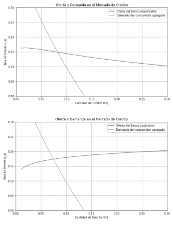 Con el fin de verificar la existencia de un equilibrio en el mercado de crédito bajo un modelo de Banca Responsable como también banca tradicional, se efectuaron dos ejercicios gráficos considerando los supuestos que se expondrán más adelante: