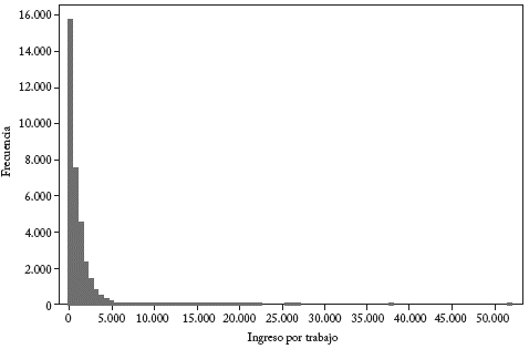 En cuanto al ingreso mensual por trabajo, la Gráfica 1 muestra una distribución sesgada hacia la izquierda, concentrándose la mayoría de los hogares en el Perú en ingresos que no superan los 5,000 soles mensuales. Respecto a la ubicación geográfica de los hogares en 2021, se determinó que el 42.35% estaba localizado en la Costa, seguido por la Sierra con un 36.83% y, en tercer lugar, la Selva con un 20.82%.