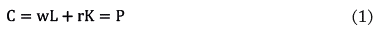 En la ecuación 1, bajo competencia perfecta, los precios igualan a los costos de producción. El ingreso derivado de la producción se divide en salarios, que retribuyen al trabajador, y en retribuciones al capital.