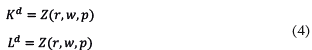 De estas igualdades se derivan las funciones de demanda de los factores de producción: