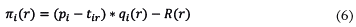 En la teoría de la renta ofertada del suelo (Bid Rent), las localizacion ese asignan de acuerdo con la renta que un productor está dispuesto a ofrecer para ubicarse en esa localización (Fujita, 2012). En este sentido, el beneficio de un productor urbano está dado por la diferencia entre los ingresos de su actividad, los costos de transporte pagados en la localización r y la renta del suelo, así como se señala en la ecuación 6: